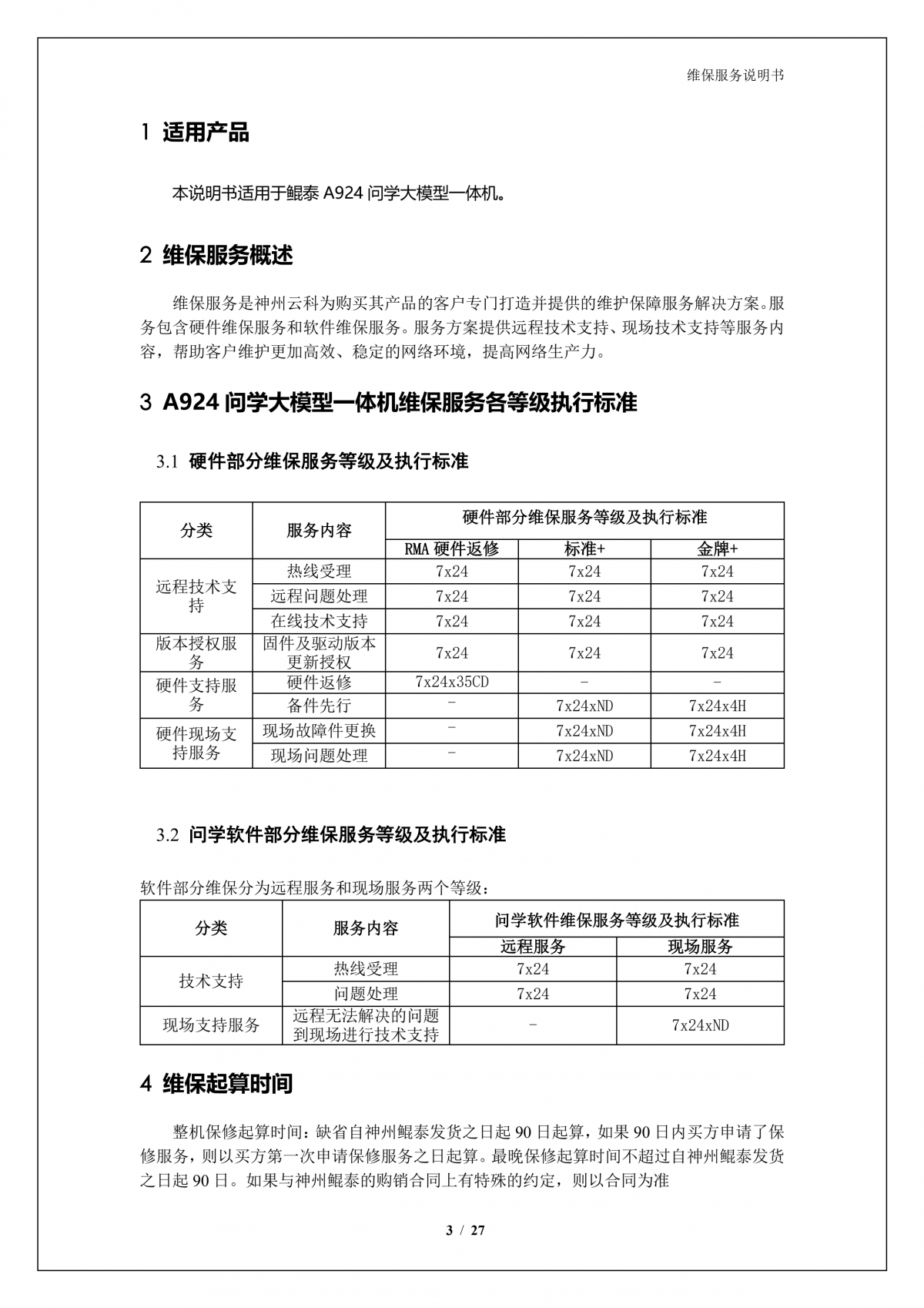 金年会A924 问学大模型一体机维保服务说明书_V1.0